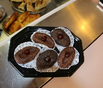 Pâte sablée au chocolat avec une noix de crème de chocolat au lait.